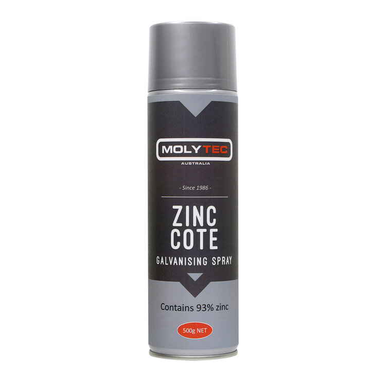 Zinc Cote cold galvanising spray is a high quality, zinc rich coating that contains 93% ultra pure zinc dust by weight in the dried film.This bonds to clean iron or steel surfaces to provide maximum protection against corrosion and rust creepage. A weld-through primer that can be powder coated. Molytec Zinc Cote is suitable for a variety of applications in automotive, marine, industrial, steel and mining industries.